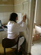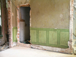 Det er vigtigt at få undersøgt sådan en bygning grundigt og få udtaget så mange relevante prøver af puds, mørtel, farvelag og tapeter m.v., inden den bliver nedtaget, for selvom den skal genopføres med så mange af de oprindelige materialer som muligt, er noget af det eneste, der ikke kan komme med netop historien. Den ender i containeren sammen med puds, maling, tapeter og andre bygningsdele, som ikke kan reddes. Hvis man skal kalde sådan en bygning en museumsgenstand, er det faktisk dokumentationen, der er museumsgenstanden og selve bygningen et billede af museums-genstanden så autentisk som muligt. Tekst og foto: Erik Bjerre Fisker, bygningsarkæolog, Den Gamle By. |